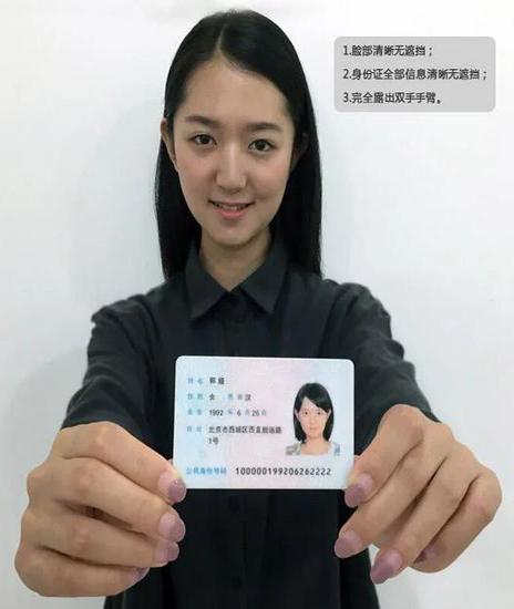 (3)确保身份证上的所有信息清晰可见、完整(没有被遮挡或者被手指捏住);